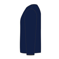 Crew neck, longer body, cuffed sleeves, split detail at sides, slight drop at back